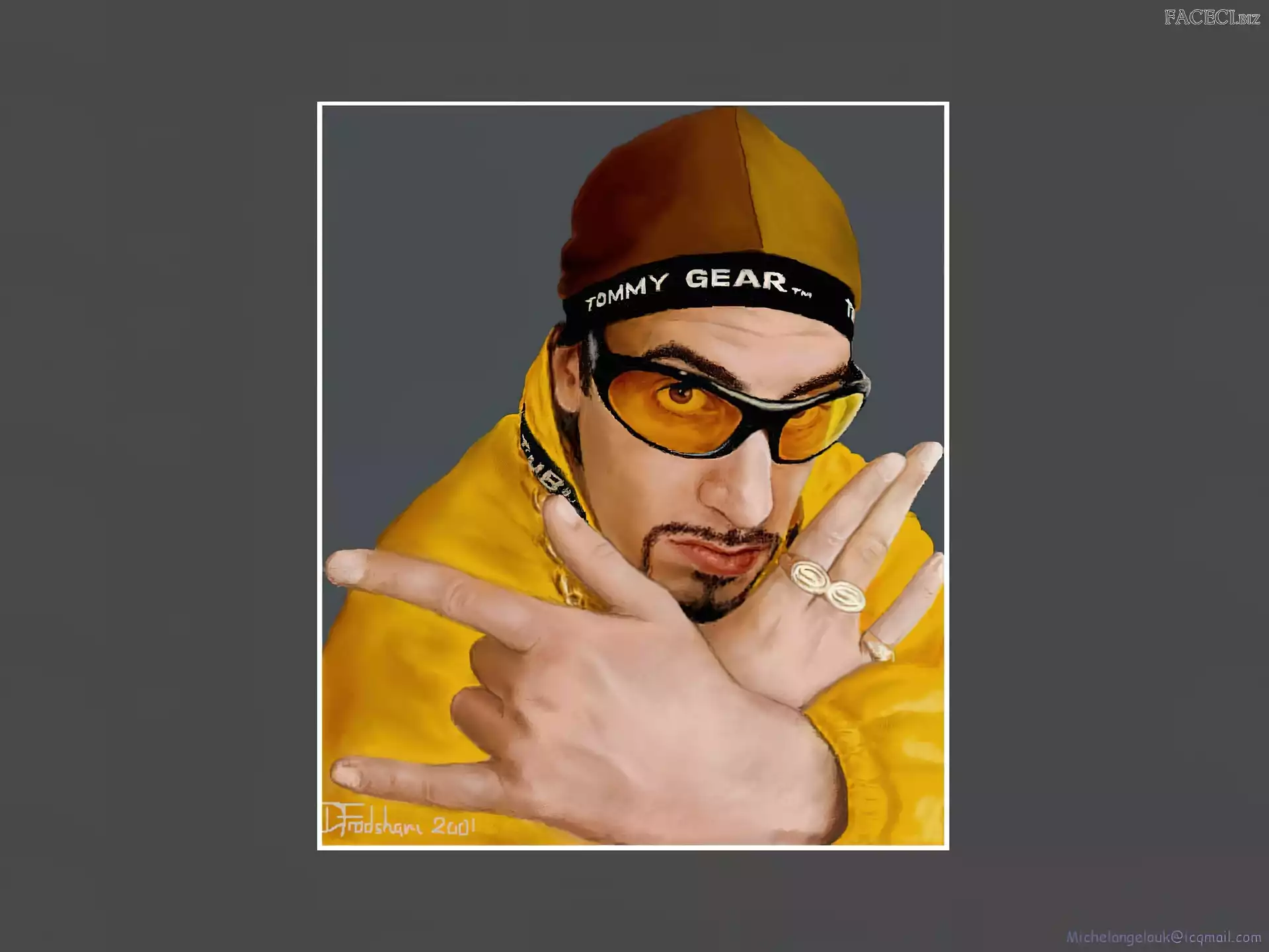 Sasha Baron Cohen, żółty strój Sasha Baron Cohen, zdjęcia złoty strój, Sasha Baron Cohen, okulary Sasha Baron Cohen, gruby łańcuch Sasha Baron Cohen, ali g Sasha Baron Cohen, niebieski dres Sasha Baron Cohen, borat
